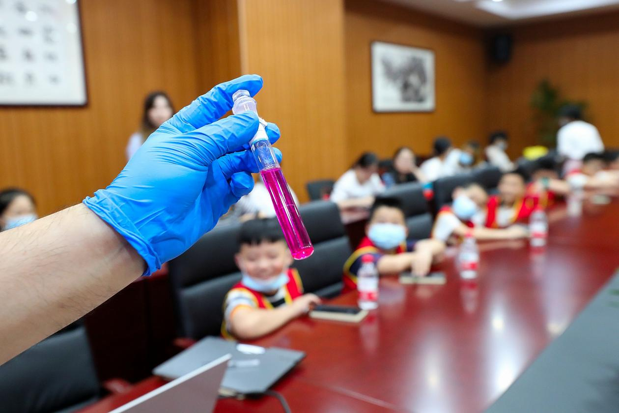 在專(zhuān)業(yè)人員的監(jiān)護(hù)下觀看張博士給大家準(zhǔn)備的精彩小實(shí)驗(yàn),有會(huì)變色的試劑、遇冷析出金箔顏色的錐形瓶和放大微觀世界的顯微鏡......實(shí)驗(yàn)中孩子們的掌聲和歡呼聲感染了帶隊(duì)的老師們和家長(zhǎng)們,也讓在場(chǎng)的工作人員們深切感受到作為一名環(huán)保行業(yè)的在業(yè)人員,身上肩負(fù)的環(huán)保使命與責(zé)任!